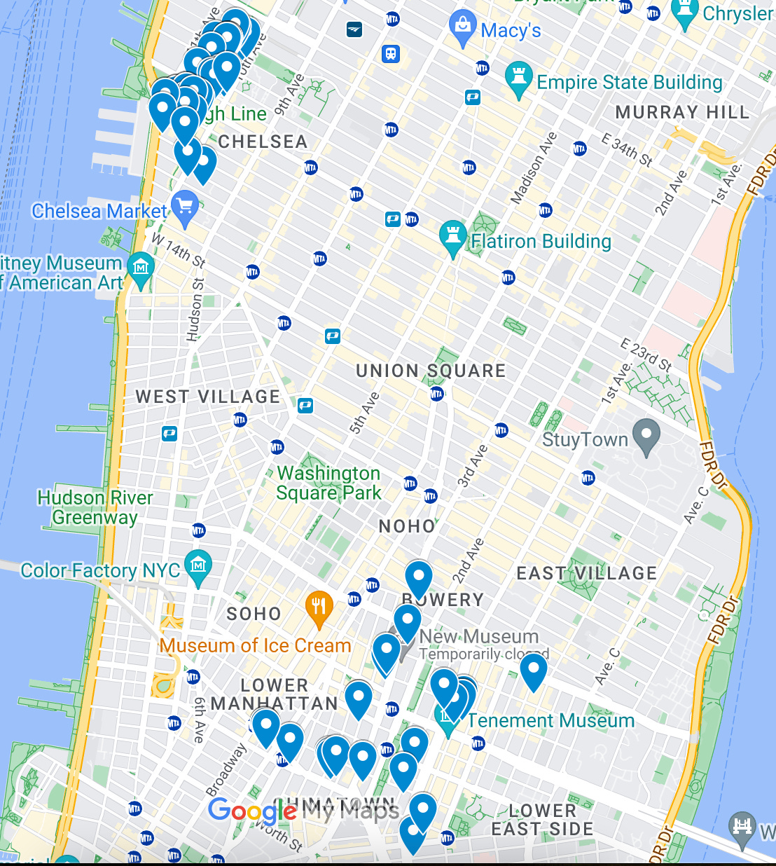 I was glad to get back into my normal gallery crawl Saturday routine, and went to 58(!) exhibitions. I made a map of everything I saw. This is *excluding* all of the openings that I went to earlier in the week — I don’t really count that as seeing the exhibition, especially this week when it was often hard to physically even get into the gallery spaces because of crowds. The map of everything I saw is linked below through the image, and a spreadsheet is linked here.